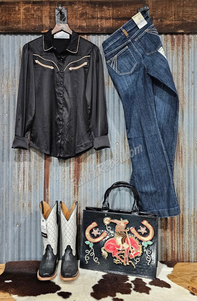 Satin Pearl Snap in Black #6602
