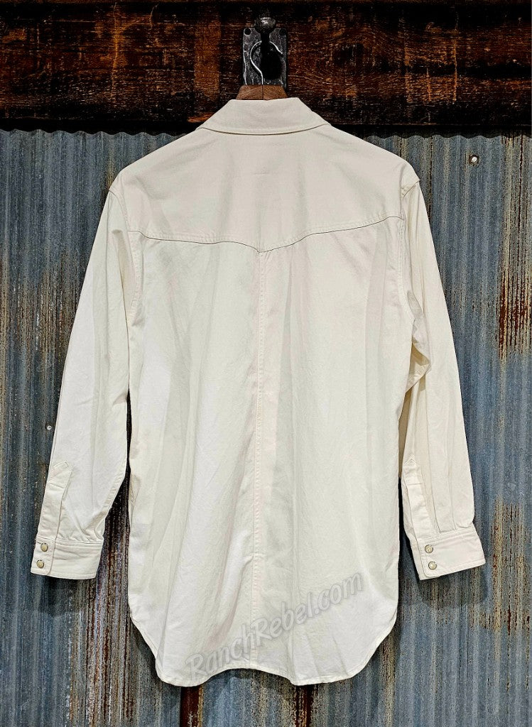 Your styling possibilities are endless with this versatile twill piece. It has a longer silhouette with a pearl snap front, front flap pockets, double snap cuffs, front & back western yokes & side seam pockets. Layer it over graphic tees & tanks, wear it solo, or belt it for a fun dress.